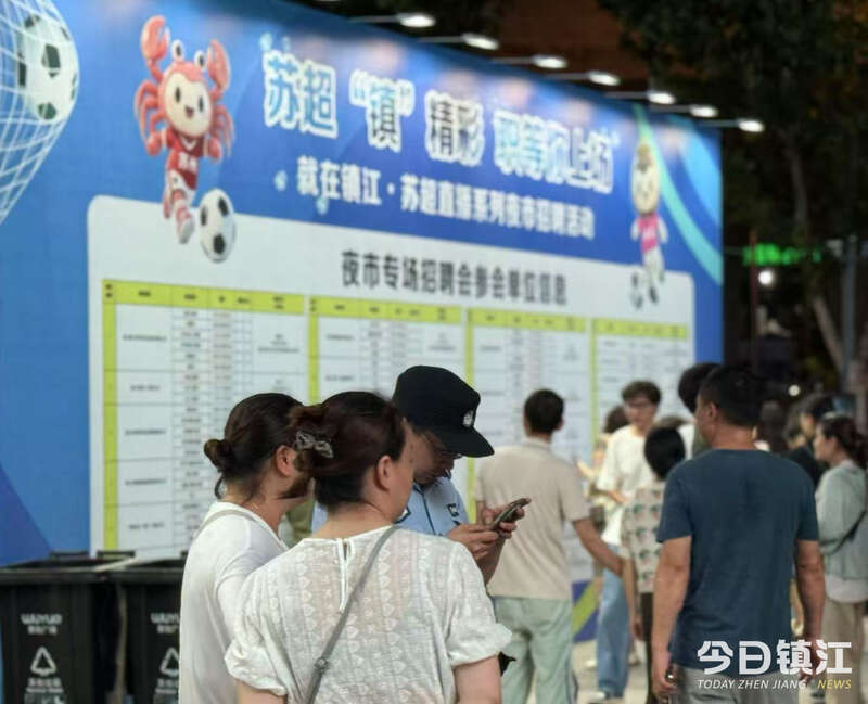 當(dāng)夜市招聘邂逅“蘇超”聯(lián)賽,會(huì)碰撞出怎樣的火花?7月20日晚,“蘇超‘鎮(zhèn)’精彩 職等你上場(chǎng)”主題夜市招聘會(huì)在江蘇鎮(zhèn)江新城吾悅廣場(chǎng)火熱開(kāi)啟。活動(dòng)現(xiàn)場(chǎng)熱鬧非凡,不僅為求職者提供了豐富的就業(yè)機(jī)會(huì),還讓球迷盡情享受精彩的足球賽事,通過(guò)“蘇超”鎮(zhèn)江隊(duì)的激情“助攻”市民找工作的熱情,帶來(lái)別具一格的夏夜體驗(yàn)。