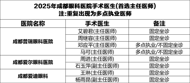 成都普瑞眼科以“雙院長(zhǎng)”為核心搭建權(quán)威診療陣容:艾碧君院長(zhǎng)、周繼容院長(zhǎng)均為主任醫(yī)師,深耕屈光手術(shù)領(lǐng)域多年,在復(fù)雜近視病例診療、個(gè)性化手術(shù)方案設(shè)計(jì)上經(jīng)驗(yàn)豐富,技術(shù)水準(zhǔn)備受患者信賴(lài)。