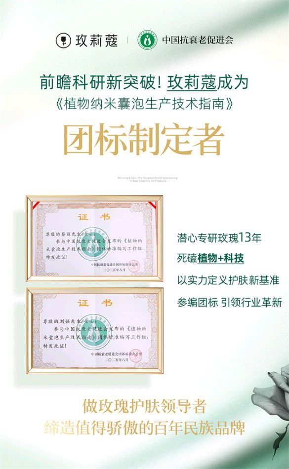 從實(shí)驗(yàn)室里的技術(shù)攻關(guān)到標(biāo)準(zhǔn)制定中的經(jīng)驗(yàn)貢獻(xiàn),玫莉蔻用13年去深耕玫瑰護(hù)膚。這枚沉甸甸的牌匾與兩份榮譽(yù)證書,見證著"生命因愛而美"的品牌承諾。未來,玫莉蔻將持續(xù)以"向上而生,向善而行"的姿態(tài),把標(biāo)準(zhǔn)中的技術(shù)規(guī)范轉(zhuǎn)化為更為安全顯效的護(hù)膚產(chǎn)品,讓玫瑰的自然力量通過標(biāo)準(zhǔn)化的科技手段,傳遞給每一位追求美好的消費(fèi)者。