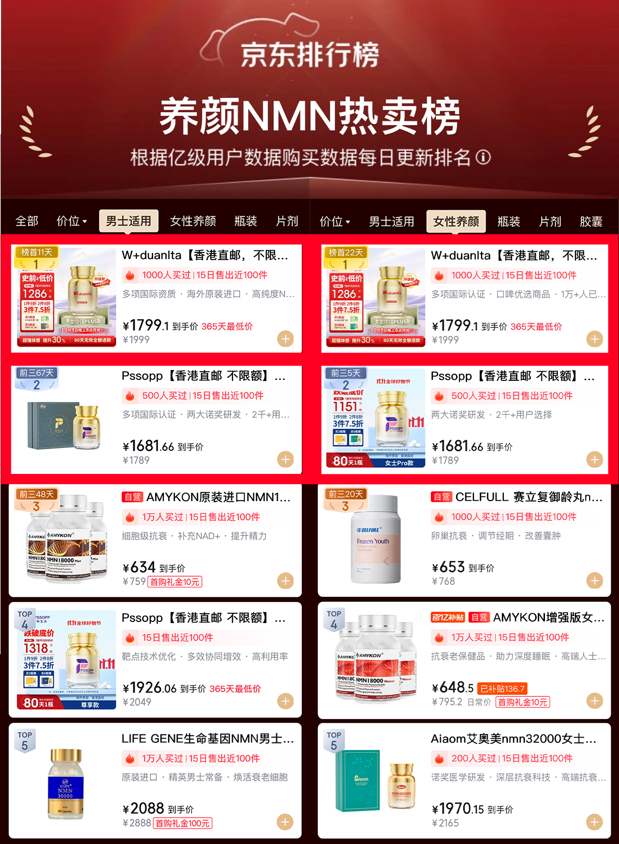 (京東真實(shí)養(yǎng)顏NMN熱賣榜,W+端粒塔第一,盼生派第二)