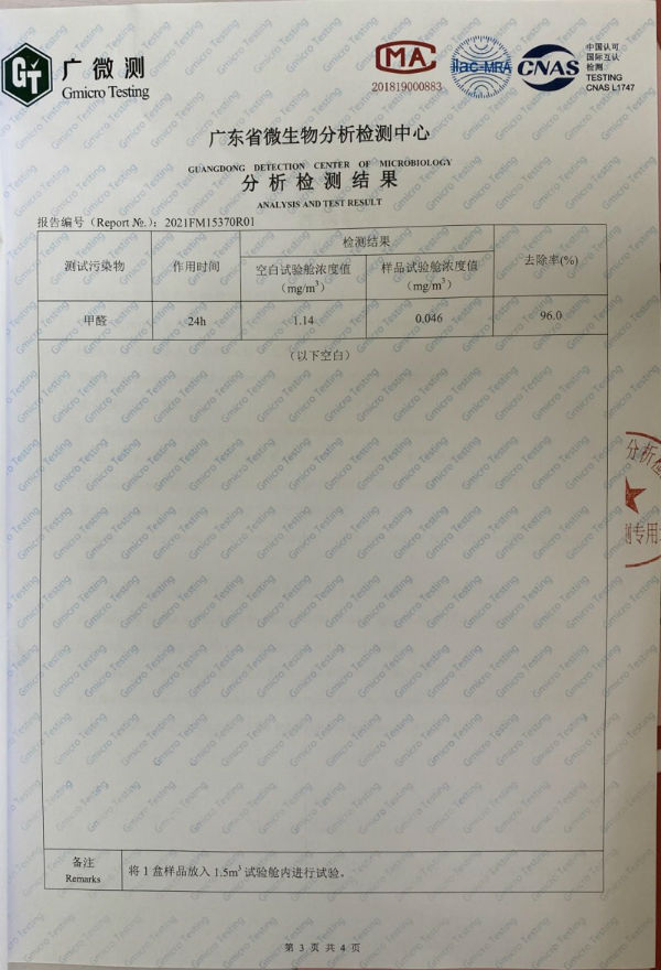 光催化效率:葉廣泥中的光催化劑,采用優(yōu)質(zhì)選材,不需要紫外線或者強(qiáng)光激活,就可以直接發(fā)揮作用,吸附后有效分解。室內(nèi)環(huán)境完全滿足分解條件,實(shí)際催化分解效果高達(dá)96%甲醛去除率,98%甲苯去除率,非常優(yōu)秀!